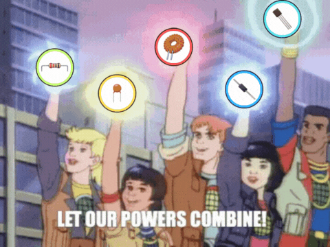 If you put that resistor with a few friends though, suddenly you’ve got something going on that can do way more. A resistor has its own superpower, but it needs the combination of the other component’s powers to achieve an outcome that’s meaningful.