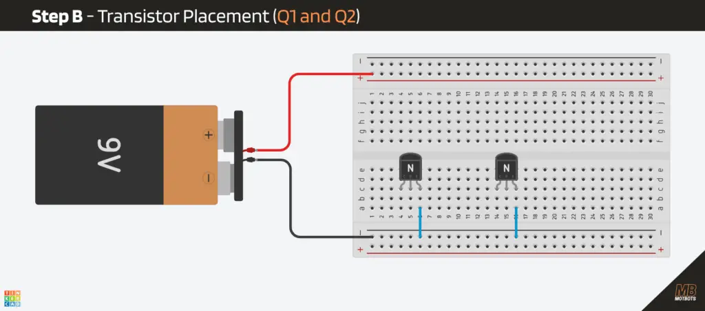 Step B – Transistor placement (Q1 and Q2)