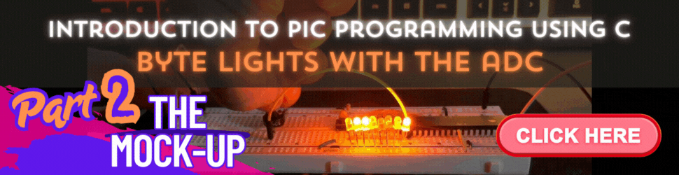 Well, at this point, we’ve learned about the ADC of the PIC microcontroller and how to set it up for using an analog input. Now that we have the know-how of using the ADC — and referring back to what we learned on setting up a PIC for digital output, from our Super Simple LED Switch PIC Project Series — we’re now well equipped to create our prototype circuit and code in the following parts of this series!