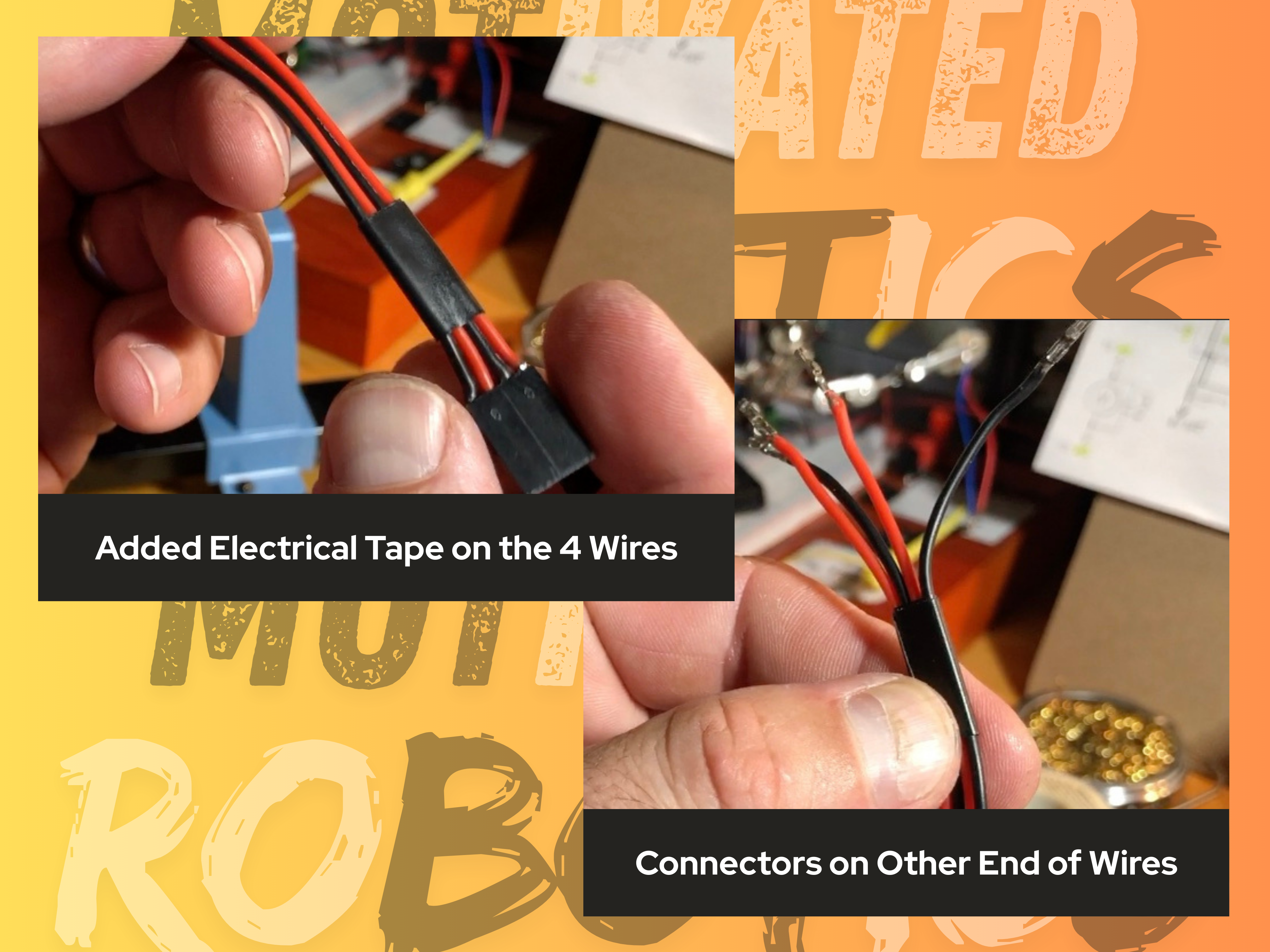 Once the 4-wire connector was assembled and finished, I added more electrical tape to keep the wires flattened out, and to tidy this assembly up a bit, as shown in the image below.