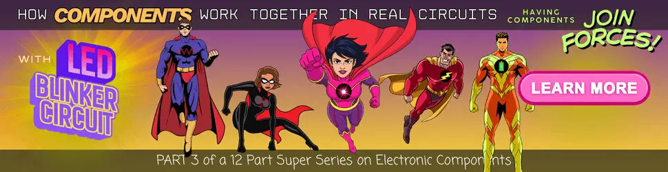 The following content is intended to be a companion to the LED blinker circuit we created from our article titled, “How Components Work Together in Real Circuits.”
